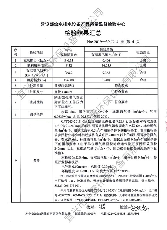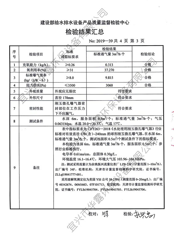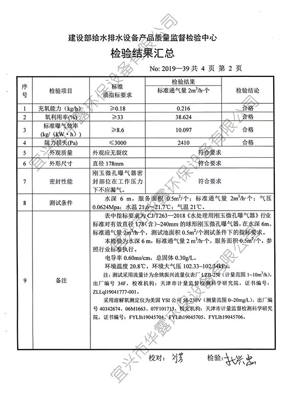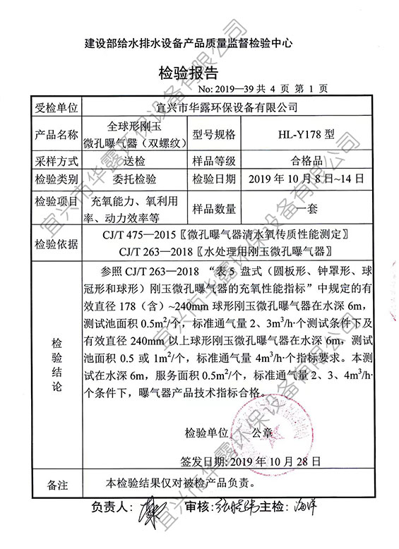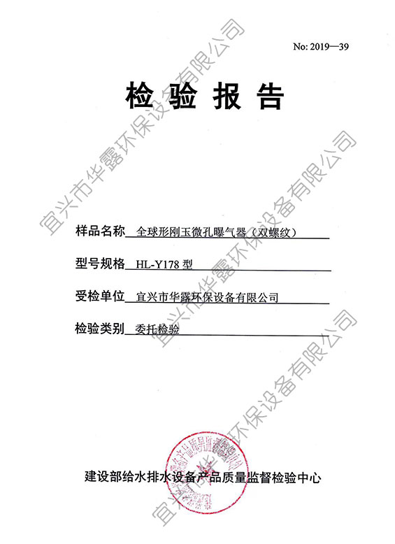全球形鋼玉微孔曝氣器(雙螺紋)HL-Y178型檢驗報告