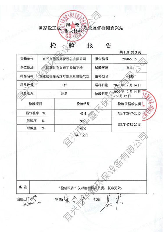 | 雙螺紋瓷接頭球形剛玉臭氧曝氣器檢驗(yàn)報(bào)告 |