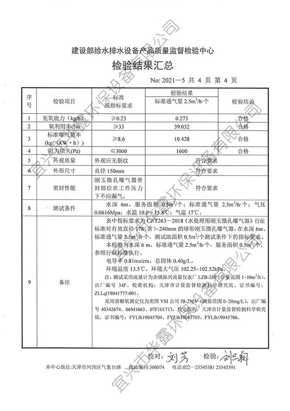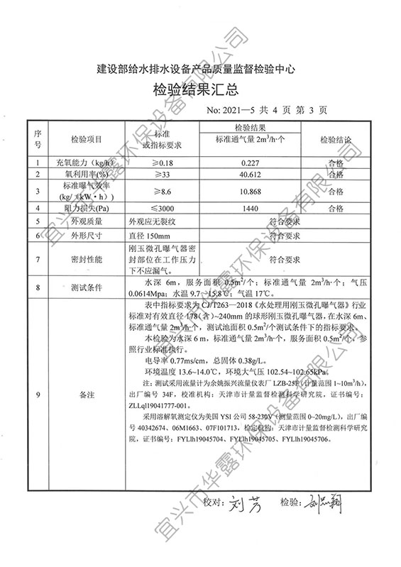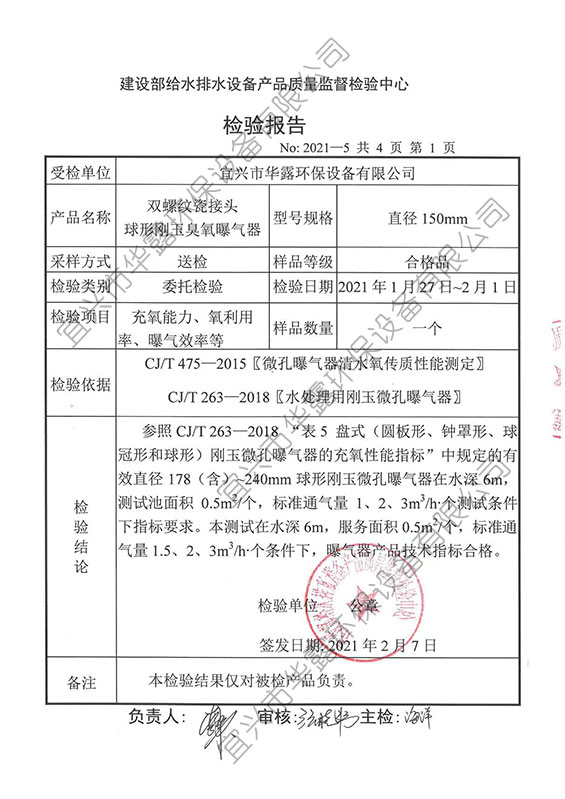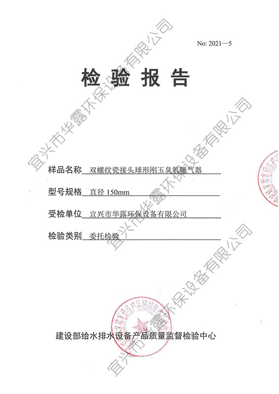 雙螺紋瓷接頭球形剛玉臭氧曝氣器HL-AC型檢驗報告